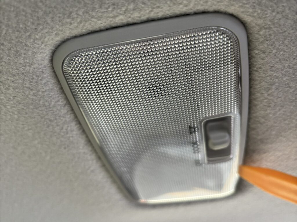 - ヘラを使って、ルームランプのレンズを前側からこじって外す