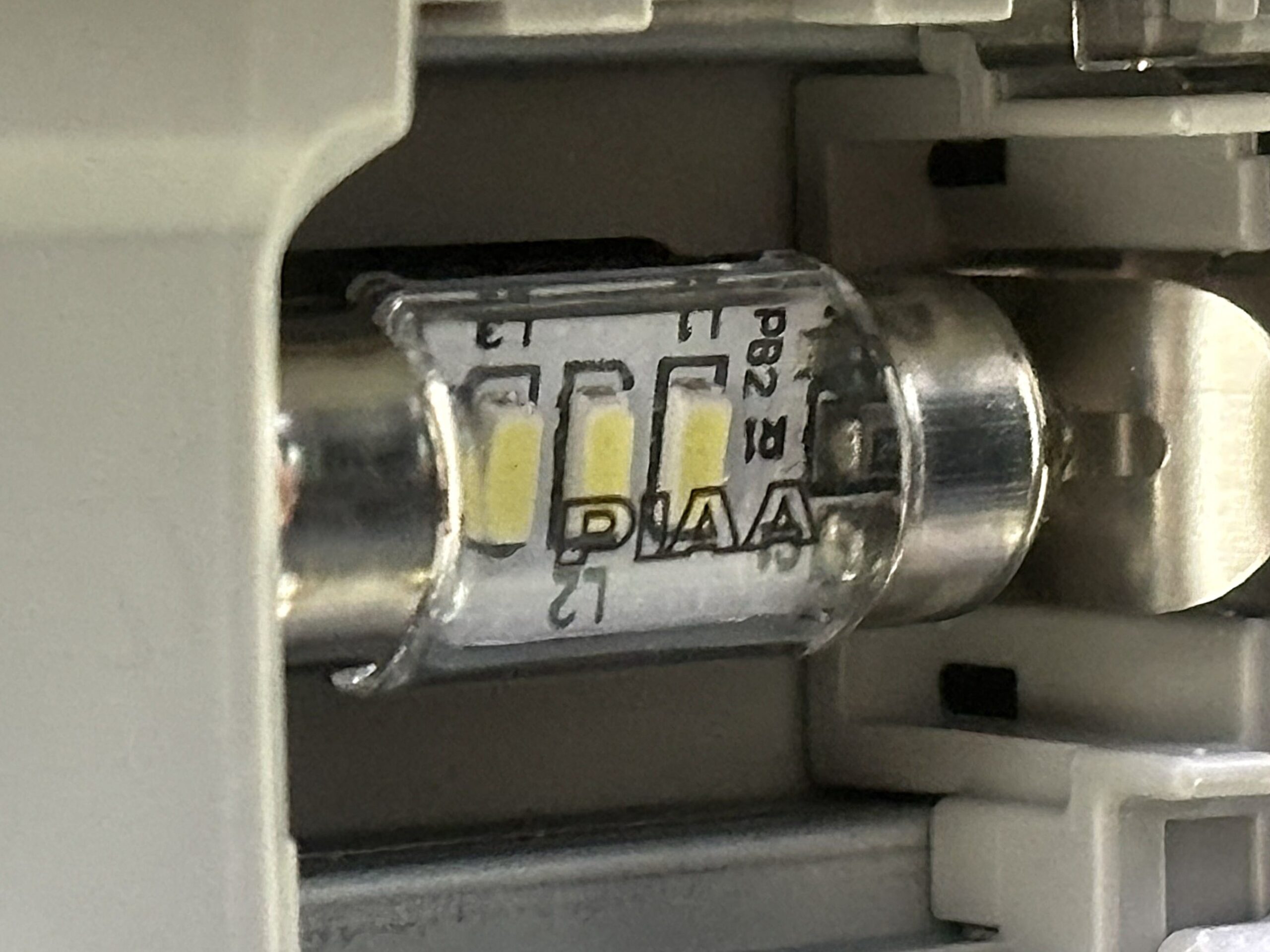 - PIAAのLEDを、LED素子が下向きになるように差し込む