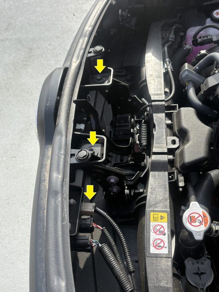 フロントグリル上部ネジとコネクタ