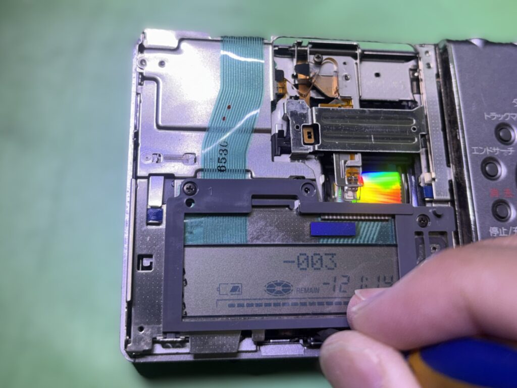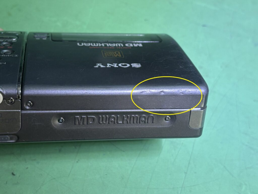 よく見ると、この個体は落とした跡があり、MDを入れる側のフタが微妙にへこんでいました。
